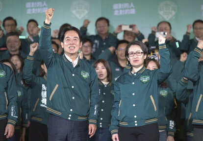 © picture alliance / ASSOCIATED PRESS | ChiangYing-yingDie Erleichterung und Freude darüber war den beiden ins Gesicht geschrieben. Mehrere zehntausend Menschen jubelten ihnen zu, als sie die riesige Bühne vor der Parteizentrale betraten, sich vor ihren Anhängerinnen und Anhängern verbeugten und sich bedankten und in die unzähligen Kameras lächelten. Die Menge tobte - ein Auftritt von Taylor Swift hätte wohl nur unwesentlich mehr Jubel hervorgerufen. Denn Wahlen und Wahlkampf sind in Taiwan emotionale Events, die riesige Menschenmassen mobilisieren.