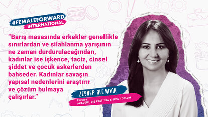 Profesör Alemdar, “Barış masasında erkekler genellikle sınırlar ve silahlanma yarışının ne zaman durdurulacağı hakkında konuşurken, kadınlar işkence, taciz, cinsel şiddet ve çocuk askerler hakkında konuşuyor” diye açıklıyor.