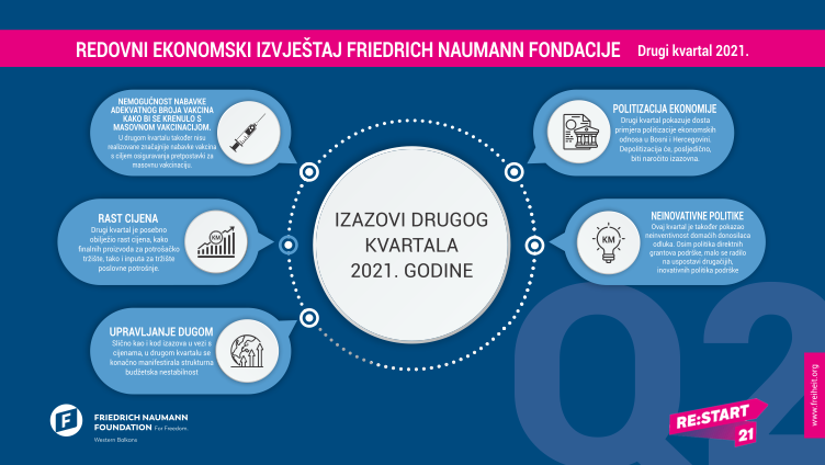 Drugi ekonomski izvještaj FNF fondacije donosi hronologiju ekonomskih kretanja u 2021.godini. Evidentno je da je došlo do ekonomskog oporavka Bosne i Hercegovine, što se vidi kroz rast industrijske proizvodnje, izvoza, porasta inostrane potražnje, ali i izuzetnih okolnosti u vezi s turizmom – uspješne turističke sezone, veliki broj novouspostavljenih aviolinija prema inostranstvu i slično.