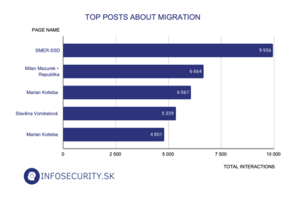 The last place belongs to another post by Marian Kotleba, who has been very active in spreading disinformation about migration. In this post, Kotleba alleges that “the government pretends that nothing is happening” and that the situation is being “completely ignored by the Ministry of the Interior”. Contrary to his statements, the government authorities and even the President have already issued several statements on the situation. In the rest of the post, he attempts to exaggerate the situation, wrongly warns the population of dangers and again calls on Slovak citizens to vote for his party in the upcoming elections if they want to protect the country. It is, however, important to state that the Slovak Police Force has still not recorded any disturbances of public order related to illegal migration in the most affected region at the time of writing this report.