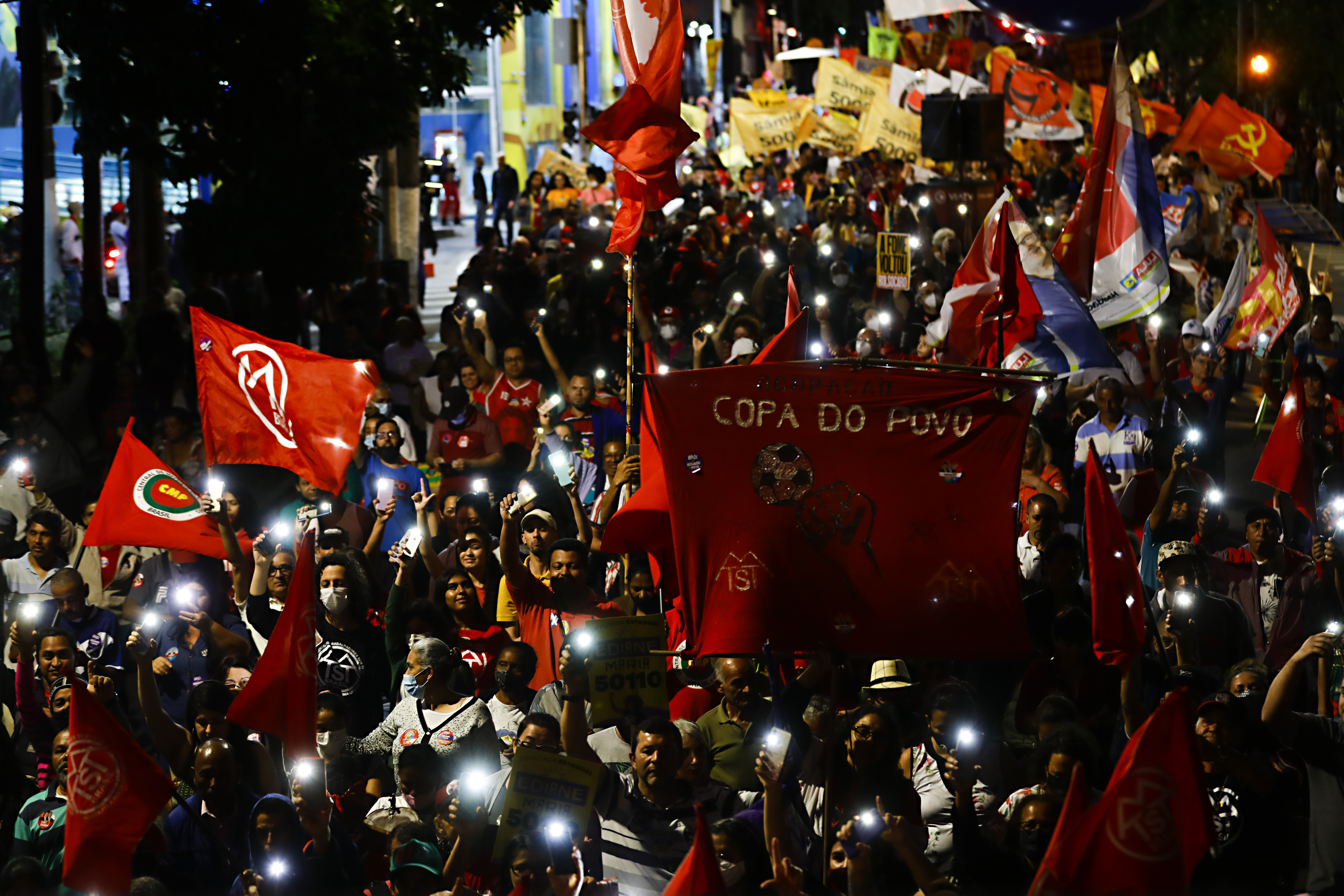 Menschen demonstrieren in Sao Paulo, Brasilien, ihre Unterstützung für den ehemaligen brasilianischen Präsidenten Luiz Inacio Lula da Silva, der sich zur Wiederwahl stellt.