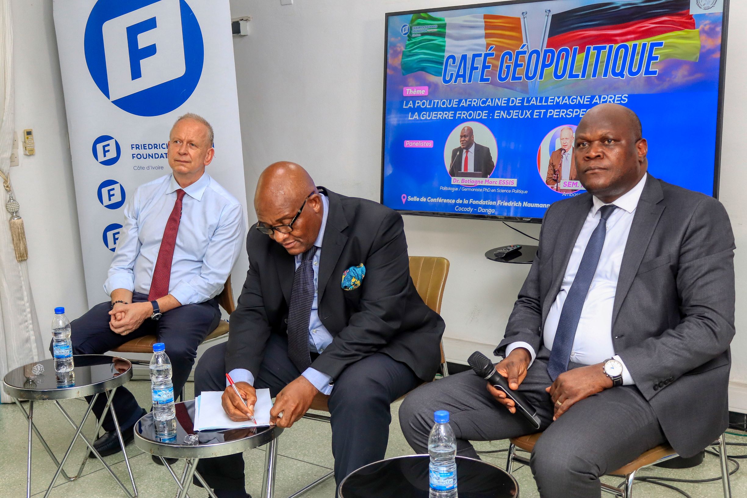 Dans le cadre de la promotion du dialogue politique en Côte d'Ivoire, la Fondation Friedrich Naumann pour en partenariat avec le Centre Africain d'Etudes Stratégiques et de Relations Internationales (CASRI) a organisé le Café Géopolitique le Jeudi 31 Mars 2022 dans ses locaux à Cocody Danga. Cette rencontre a eu pour thème: « La Politique Africaine de l'Allemagne après la guerre froide: Enjeux et perspectives ».