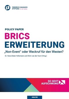 Die Erweiterungsrunde der BRICS-Gruppe Anfang des Jahres um fünf neue Mitgliedstaaten wirft Fragen nach den politischen und wirtschaftlichen Folgen auf. Das neue Policy Paper der Friedrich-Naumann-Stiftung erörtert die politischen und wirtschaftlichen Interessen der bisherigen und der neuen BRICS-Mitglieder sowie der potenziellen Kandidaten und versucht liberale Antworten auf das aufstrebende Staatenbündnis zu geben.