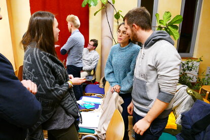 Auch vor und nach der Podiumsdiskussion wurde diskutiert, wie hier im Welthaus Bielefeld