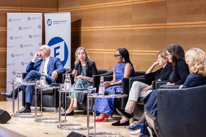 Franziska Brandmann, Chairperson, Young Liberals Germany; Queenin Masuabi, Senior Political Reporter, Daily Maverick, South Africa; Dr. Melinda Crane, Journalist and Political Scientist; Dr. Martina Weyrauch, Director, Center for Civic Education Brandenburg State, Germany, Surabhi Hodigere Spokesperson, Bharatiya Janata Party, India und Dr. Regina von Görtz, Director, Democracy and Cohesion, Bertelsmann Foundation.