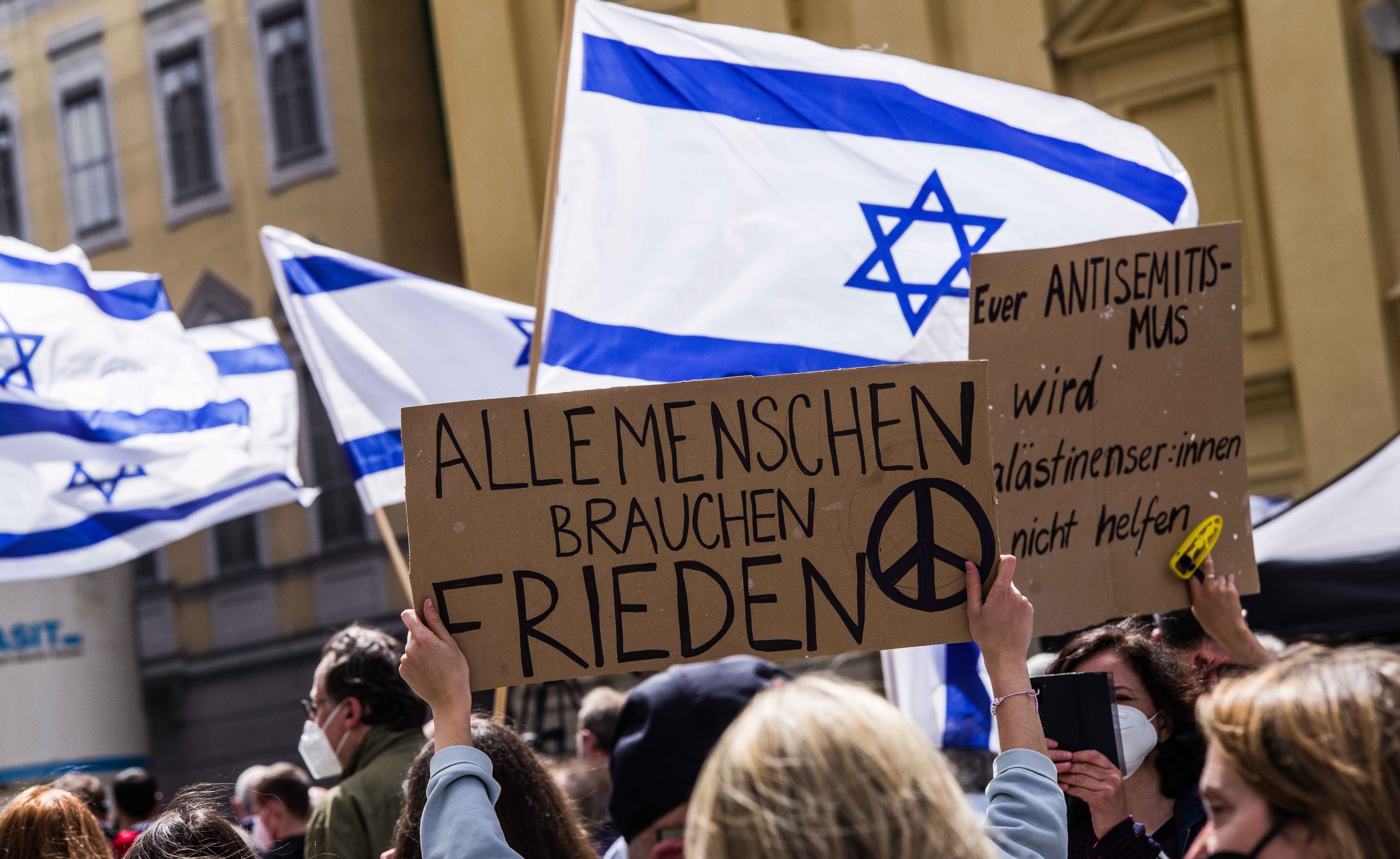 Mitglieder jüdischer Organisationen sowie Münchner Bürgerinnen und Bürger demonstrierten auf dem Odeonsplatz für Solidarität mit den jüdischen Gemeinden, für Koexistenz und für Frieden im Nahen Osten.