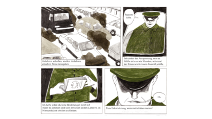 „Europa ist für mich ein Stück weit Heimat: keine Binnengrenzen, der Wunsch nach politischer und wirtschaftlicher Sicherheit und Stabilität. Gleichzeitig bedeutet Europa für mich auch Zweifel, Unstimmigkeit und Wandel. Ich merke, dass die europäische Idee immer wieder ein Hinterfragen und Zurechtrücken auf mehreren Ebenen erfordert“, sagt Kaszuba. Genau gegen die Europazweifel versucht sie ihre Kunst zu setzen. In ihrem prämierten Werk setzt sie sich zeichnerisch mit dem Rechtsruck in der EU auseinander. „Besonders zum Thema Grenze habe ich noch einen eigenen Zugang, da ich damals als Kind noch Grenzen innerhalb der EU erlebt habe.“