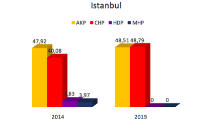 Doch die wohlmöglich größte Überraschung lässt im Augenblick noch auf sich warten. Knapp drei Tage nach Schließung der Wahllokale ist immer noch nicht ausgemacht, wer künftig die 15-Millionen-Metropole Istanbul regieren wird. Der Kampf um Istanbul bescherte den Türken wahrscheinlich ihre spannendste – und mit Sicherheit längste – Wahlnacht in der langen Geschichte demokratischer Abstimmungen – und es bleibt weiterhin eine Zitterpartie. Binali Yıldırım, ehemaliger Ministerpräsident und Kandidat der aus der regierenden AKP und der rechtsnationalistischen MHP bestehenden „Volksallianz“, wähnte sich lange als sicherer Sieger. Denn sein Gegner, Ekrem Imamoğlu von der CHP war bislang lediglich Bürgermeister eines Istanbuler Randbezirks und wahrscheinlich selbst unter den eingefleischtesten CHP-Anhängern bis zu diesen Wahlen ein unbeschriebenes Blatt.