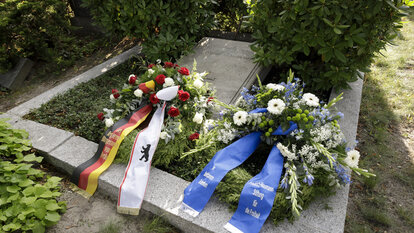 Die Veranstaltung begann mit einem kurzen Rundgang über den Kirchhof, auf dem auch andere bedeutende liberale Persönlichkeiten ihre letzte Ruhe gefunden haben.