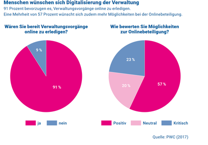 Die Verwaltung der Liberalen Stadt versteht sich als service-orientierter Dienstleister. Für ansässige Unternehmen sowie Firmengründerinnen und -gründer agiert sie als One-Stop-Agency, in der alle Fragestellungen von einheitlichen Ansprechpersonen bearbeitet werden. Alle Leistungen, die sich digital erledigen lassen, werden inzwischen komplett online angeboten. Ein freiwilliges Bürgerkonto ermöglicht die digitale Abwicklung sämtlicher Verwaltungsvorgänge. Hierdurch sparen Bürgerinnen und Bürger, Unternehmen und auch die Verwaltung viel Zeit. Die Behörden können sich so vermehrt der Betreuung komplizierterer Sachverhalte widmen und serviceorientiert agieren. Im Rahmen der Digitalisierungsstrategie wird auch die Transparenz der Verwaltung erhöht und es werden neue Beteiligungsmöglichkeiten geschaffen. Aktuelle Daten zum kommunalen Haushalt werden zeitnah bereitgestellt und verständlich visualisiert. Durch eine Vielzahl digitaler Beteiligungsformate können die Bürgerinnen und Bürger ihre Ideen einbringen und direktes Feedback geben.