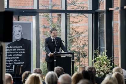 Marco Buschmann auf der Trauerfeier für Gerhart Baum.