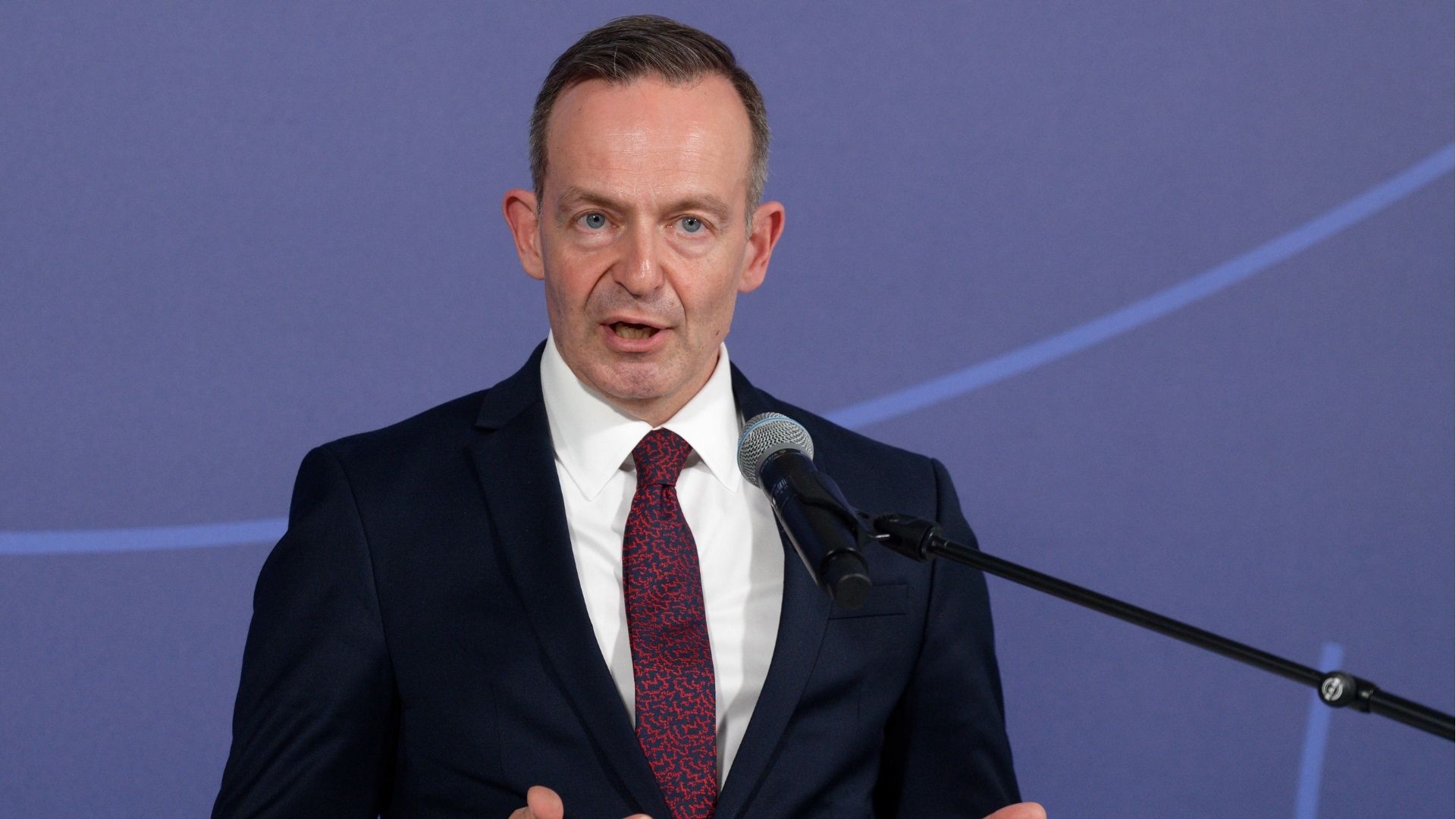 Volker Wissing (FDP), Bundesdigitalminister, spricht im Rahmen der G7-Digitalministerkonferenz zu Journalisten