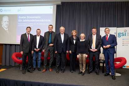 v.l.: Prof. Dr. Karl-Heinz Paqué, Vorsitzender des Vorstands der Friedrich-Naumann-Stiftung für die Freiheit, Prof. Dr. Ewald Grothe, Leiter des Archiv des Liberalismus der Friedrich Naumann-Stiftung für die Freiheit, Wilfried Klein, Geschäftsführender Vorstand des Gustav-Stresemann-Instituts e. V., Dr. h.c. Erik Bettermann, Präsident des Gustav-Stresemann Institut e. V., Dr. Christina Stresemann, Vorsitzende des Stiftungsrates der GSI Gustav Stresemann Stiftung, Prof. Dr. Anne C. Nagel, Professorin für Neuere und Neueste Geschichte, Justus-Liebig-Universität Gießen, Sven Felix Kellerhoff und Prof. Dr. Andreas Rödder, Präsident der Stresemann-Gesellschaft e. V.