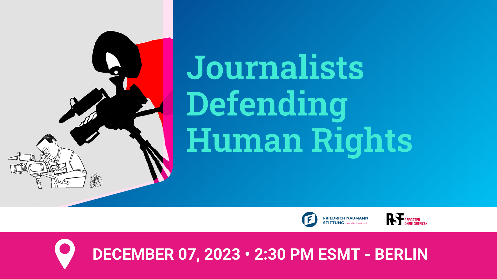 Anlässlich des 75. Jahrestages der Allgemeinen Erklärung der Menschenrechte und des 25. Jahrestages der UN-Erklärung über Menschenrechtsverteidiger veranstalten die Friedrich-Naumann-Stiftung für die Freiheit (FNF) und Reporter ohne Grenzen Deutschland (RSF) gemeinsam die internationale Konferenz "Journalists Defending Human Rights". Hören Sie prominente Menschenrechtsjournalistinnen und -journalisten, wie die Nobelpreisträgerin Maria Ressa (Philippinen), sowie Journalistinnen aus anderen Ländern.