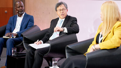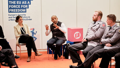 Vertreter aus Afrika, Taiwan, und der Ukraine sowie der Koordinator der Bundesregierung für transatlantische Zusammenarbeit, Michael Link, diskutierten, wie die EU in verschiedenen Weltregionen wahrgenommen wird (insbesondere im Vergleich zu anderen Global Players wie China und Russland) und wie die EU eine stärkerer Partnerin für ihre Verbündeten werden kann.