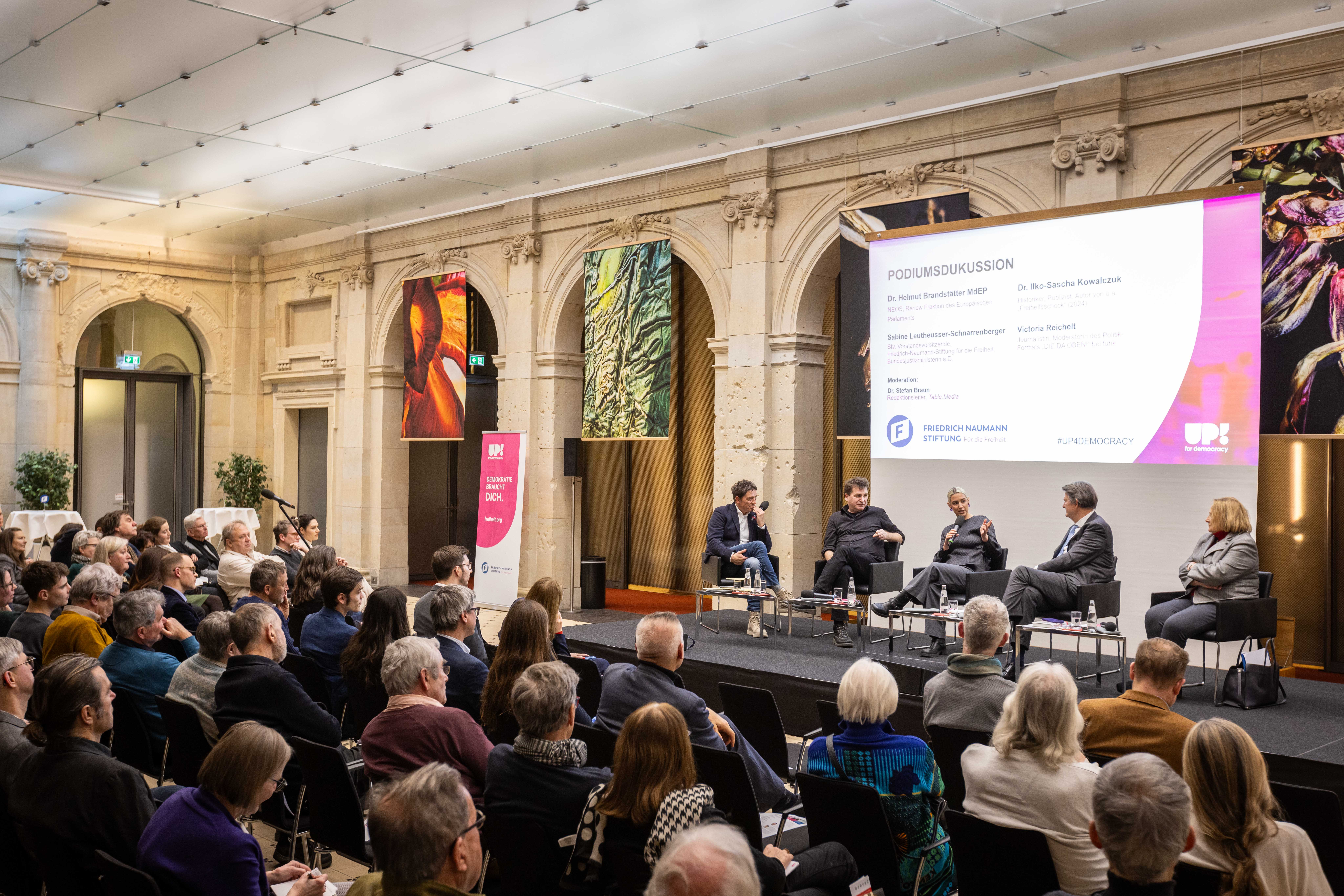 Dr. Stefan Braun, Dr. Ilko-Sascha Kowalczuk, Victoria Reichelt, Dr. Helmut Brandstätter MdEP und Sabine Leutheusser-Schnarrenberger sprachen auf der Podiumsdiskussion.