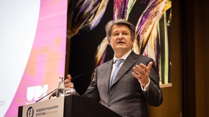 Sabine Leutheusser-Schnarrenberger, stv. Vorsitzende, Friedrich-Naumann-Stiftung für die Freiheit; Bundesjustizministerin a.D., bei ihrer Begrüßungsrede.