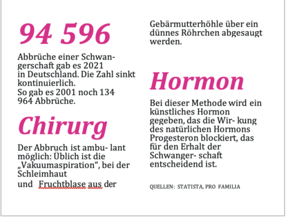 In Polen sind derartige Proteste schon an der Tagesord- nung. Im vergangenen Jahr wurde dort ein nahezu vollständiges Abtreibungsverbot verhängt, mit verheerenden Folgen: Seit Inkrafttreten hat es bereits mindestens zwei Frauen das Leben gekostet. Sie starben nach dem Tod eines Fötus an einer Blutvergiftung, weil die Ärzte nicht eingriffen. Mittlerweile gibt es Organisationen, die Polinnen dabei unterstüt- zen, einen Schwangerschaftsabbruch in Deutschland vornehmen zu lassen.