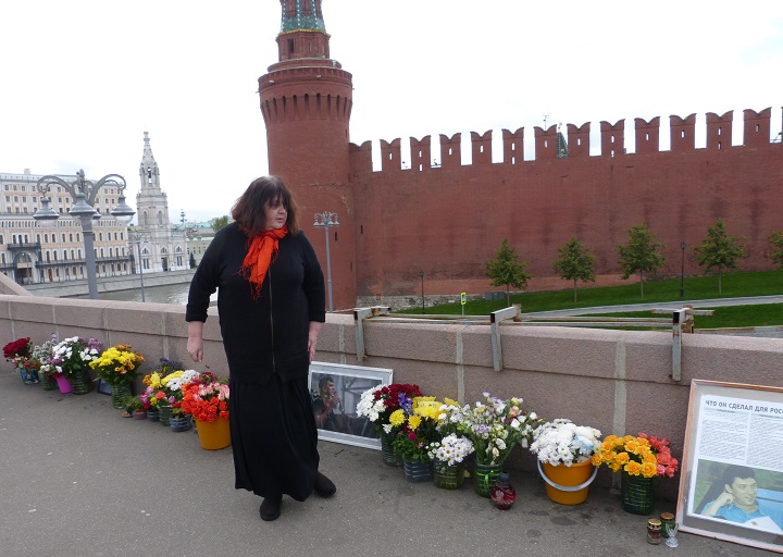 Seit dem Mord an Boris Nemtsov hält Nadezhda die Erinnerung an ihn wach: Als eine der Freiwilligen auf der „Nemtsov-Brücke“ trägt sie sein Andenken auch in die Öffentlichkeit. Nadezhda betreut die Gedenkstätte auf der „Nemtsov-Brücke” und kümmert sich nach jeder Verwüstung durch die Behörden unermüdlich um den Wiederaufbau. Wenn ich alleine oder mit meinen russischen und ausländischen Freunden auf die besagte Brücke komme, treffe ich Nadezhda oft vor Ort. Wie viele bin ich ihr für die Mahnwache vor dem „Nemtsov-Volksdenkmal” und für dessen Schutz unglaublich dankbar.