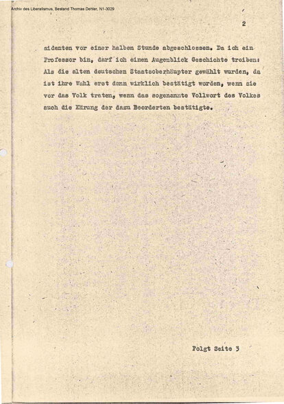 © Foto Darchinger. Nutzungsrecht Friedrich-Naumann-Stiftung, ADL, Fotosammlung, FD-135Ein Liberaler an der Spitze eines deutschen Nationalstaats, das hatte es bislang noch nicht gegeben. Die Wahrscheinlichkeit, dass es 1949 anders sein würde, war angesichts der politischen Stärkeverhältnisse in der neu gegründeten Bundesrepublik auch nicht sehr hoch: Die Freien Demokraten waren zwar mit knapp 12 Prozent als drittstärkste Fraktion aus der ersten Bundestagswahl hervorgegangen, lagen damit aber fast 20 Prozentpunkte hinter CDU/CSU und gut 17 Prozentpunkte hinter der SPD.