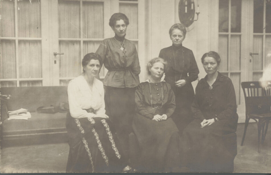 Gruppenfoto der DDP-Frauen 1919/20, v.l.n.r. Gertrud Bäumer, Elisabeth Brönner-Höpfner, Marie Baum, Katharina Kloß, Elise Ekke
