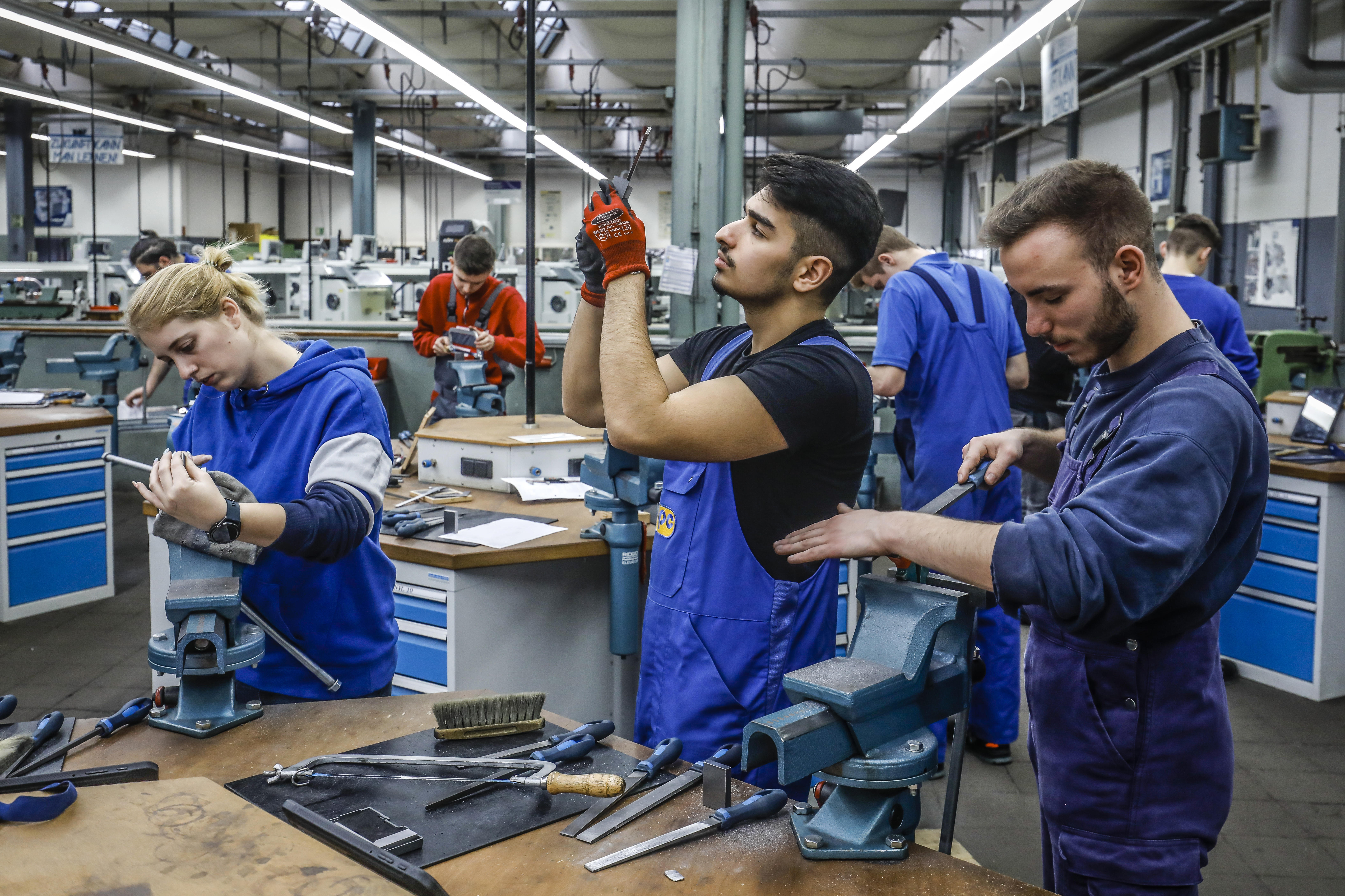 Auszubildende in Metallberufen hier bei der Grundausbildung.