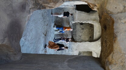 Gestärkt fuhren wir weiter nach Uplisziche, einer historisch bedeutsamen Festungs- und Höhlenstadt. Dieser Ort ist knapp 3000 Jahre alt und wurde bereits in der Bronzezeit bewohnt. Durch seine geostrategische Lage erfuhr es einen Aufschwung als Umschlagspunkt an der Seidenstraße und durchlebte düstere Zeiten in zahlreichen kaukasischen Kriegen. Aufgrund eines verheerenden Erdbebens Anfang des 20. Jahrhunderts wurden 80% der Stadt zerstört.