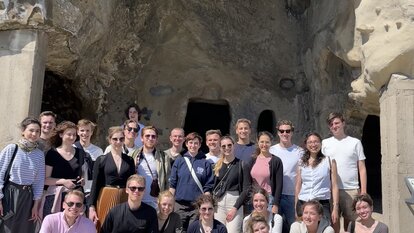Spätnachmittags ging es weiter zu unserem finalen Ziel, Kutaissi. Auf dem Weg dorthin wurden wir von Frau Kiknadze mit traditionellem süßen Brot, auch Nazuki genannt, versorgt. Den Abend haben wir dann beim gemeinsamen Abendessen mal wieder genüsslich ausklingen lassen.