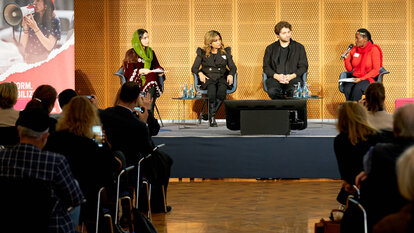 Bei der Veranstaltung mit dem Titel „Journalists Defending Human Rights“ berichteten Journalisten und Journalistinnen aus Mexiko, Russland und Afghanistan über ihre Erfahrungen, und die philippinische Journalistin und Friedensnobelpreisträgerin Maria Ressa sprach über Technologie als Gefahr für die Demokratie.