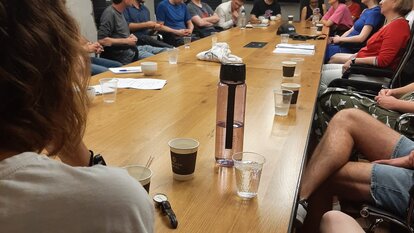 Der Freitag begann für uns mit einer Diskussionsrunde mit zwei Vertretern der Yesh Atid Youth, der Jugendorganisation der Yesh Atid Partei. So hatten wir die Gelegenheit von jungen Leuten unseres Alters zu erfahren, wie es ist, in Israel zu leben und politisch aktiv zu sein. Wir diskutierten u.a. die verschiedenen Friedenslösungen, die Wehrpflicht und die Rolle der ultraorthodoxen Gruppen in der Gesellschaft. Natürlich kamen wir auch auf die aktuellen Proteste gegen das Regierungsreformpaket zu sprechen.