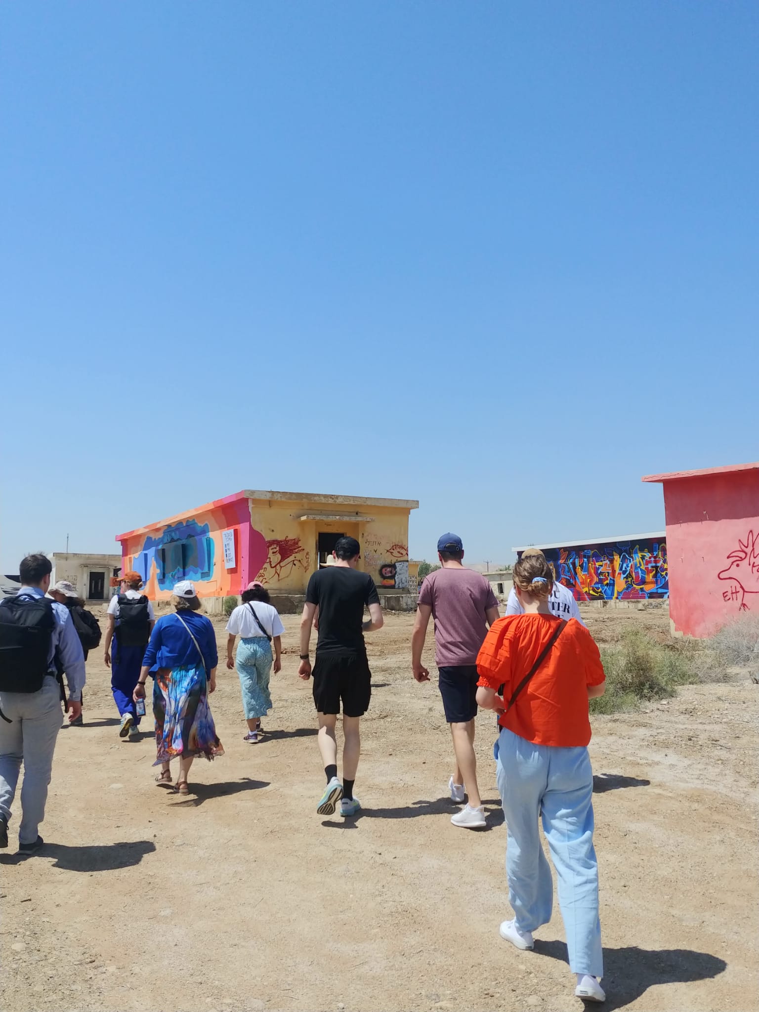 An unserem vierten Tag in Israel führte uns Danielle Mayron von „EcoPeace“ in die Zusammenarbeit von Jordanien, Israel & den palästinensischen Gebieten zum Gewässerschutz ein. Die Auswirkungen der Übernutzung & des Klimawandels erlebten wir hautnah bei der Besichtigung eines Abschnittes des stark verschmutzten Flusses Jordan, an dem Jesus wohl getauft wurde und einer ehemaligen Hotelanlage, die inzwischen kilometerweit vom derzeitigen Ufer des Toten Meeres entfernt liegt. Eine künstlerische Aufarbeitung bot der Besuch einer verlassenen Militärbasis, die von lokalen Graffiti-Künstlern zu einer Freiluftausstellung umgestaltet wurde. Auch für die Bewohner des Kibbutz „En Gedi“ stellen diese Veränderungen eine Herausforderung dar, die sie als Pioniere der Wüstenbewirtschaftung aber optimistisch annehmen: „where there is a will, there is a way“.