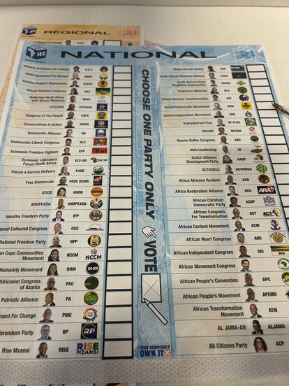 Stimmzettel der allgemeinen Wahl in Südafrika.