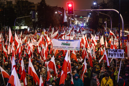 Tausende bei Protesten der rechten Opposition unter Jarosław Kaczyński um die neue Regierung zu deligitiemieren - am 11. Januar 2024.