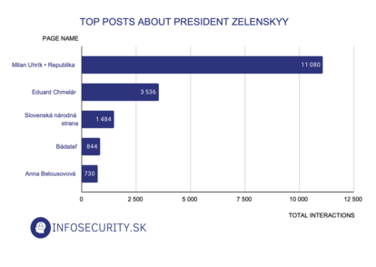 Since the visit of the Ukrainian President Zelenskyy has been one of the major topics in Slovak information space in the past two weeks, we also looked at it through an optic of a list of disinformation actors in Slovakia. We used the CrowdTangle analysis tool to analyse the most popular posts on Slovak Facebook that include the keywords “Zelenskyy“. Posts were evaluated based on the total number of interactions (the sum of all reactions, comments, and shares).