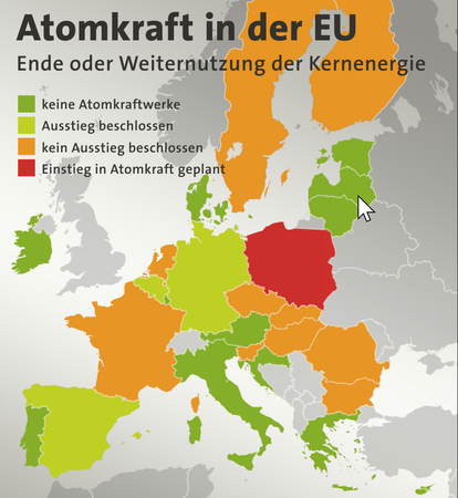 © picture alliance / photothek | Florian GaertnerDie polnischen Behörden planen den Bau des ersten Kernkraftwerks des Landes bis 2033. Dazu wählten sie Westinghouse Electric Company, ein US-amerikanisches Unternehmen, und lehnten französische und südkoreanische Konkurrenten (EDP bzw. KHNP) ab. Die Regierung in Warschau will bis 2040 zwischen 25 % und 36 % ihres Energiebedarfs (6-9 GW) mit den bis zu sechs Kernreaktoren decken. Das erste Kraftwerk wird im Dorf Choczewo nahe der Ostsee in Betrieb gehen. Der Baubeginn ist für 2026 angesetzt, die Fertigstellung des ersten Reaktors ist für 2030 geplant. Letzterer Termin erscheint einigen Energieexperten jedoch unrealistisch.