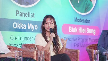 Panel Discussion Hosted by Biak Hlei Sung, Executive Programme Manager of FNF Myanmar (Leftmost)