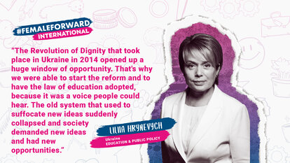 Being able to implement this change and shift society’s mindset that children need to be taught differently than previous generations was a huge endeavour, but what helped Liliia Hrynevych was the momentum created by the Ukrainian revolution. “The Revolution of Dignity that took place in Ukraine in 2014 changed the value system of very many people”, she says. “It opened up a huge window of opportunity. That's why we were able to start the reform, to adopt the education and reform laws, because it was a voice people could hear. The system that used to suffocate new ideas suddenly collapsed and society now demanded new ideas and had new opportunities”, Hrynevych points out.