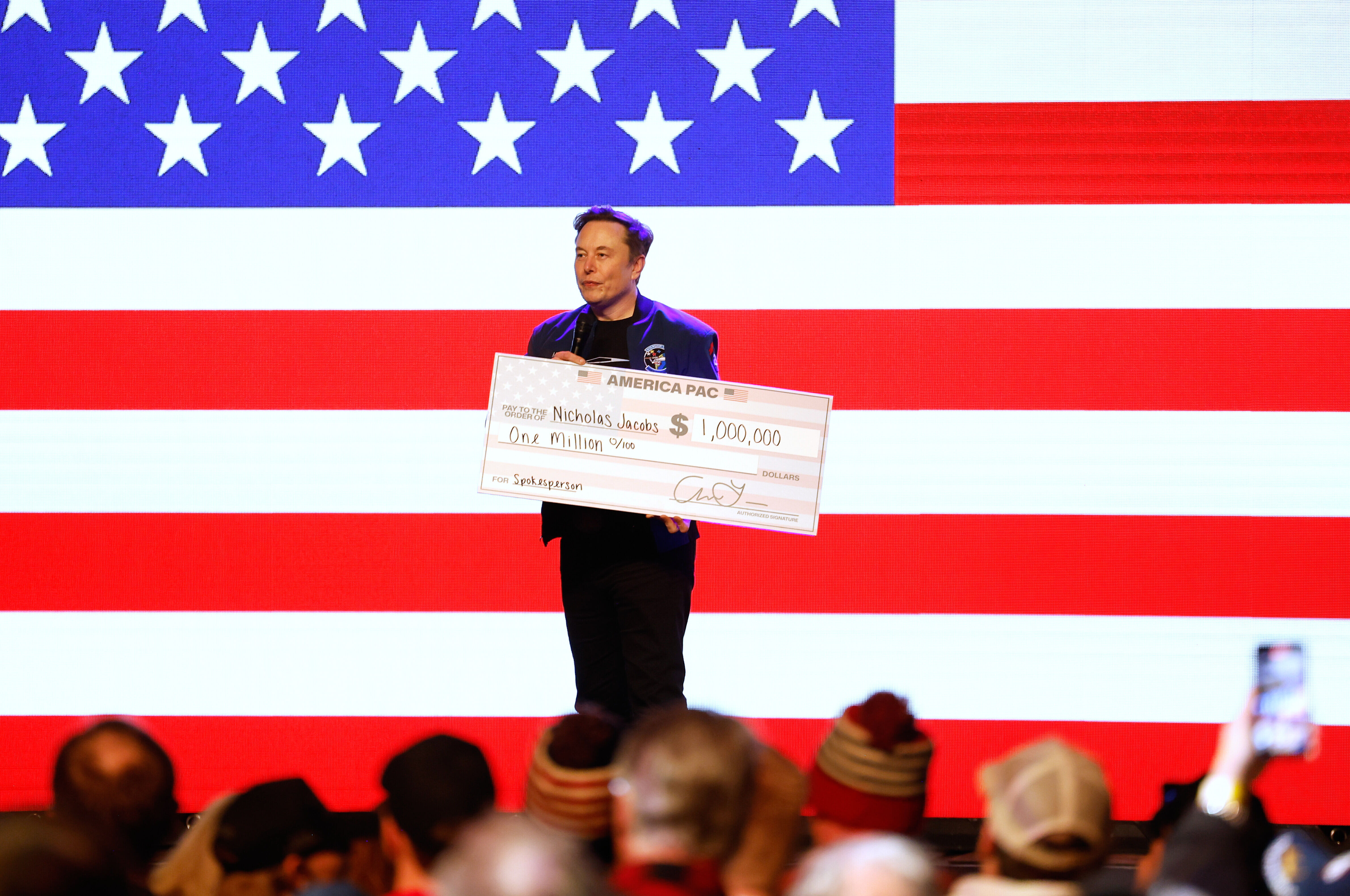 Elon Musk überreicht einen der Millionenschecks an Unterstützer seiner Petition gegen "aktivistische Richter".