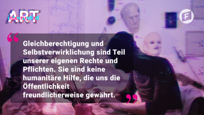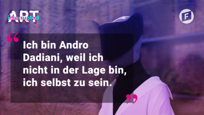 Genau in diesem Umfeld lebt und arbeitet der quere Künstler Andro Dadiani. Dieses konservative Umfeld ist der Grund, warum Andro Dadiani seine Identität unter einem Pseudonym verbirgt, Masken und Kostüme trägt und seine Stimme bis zur Unkenntlichkeit verändert. Sein Schaffen dreht sich um die Kämpfe von LGBTQI+-Menschen und anderen sozialen, ökologischen und politischen Problemen. In seinen Werken versucht er, diese Probleme durch die Sprache der Kunst zu verdeutlichen und alternative Wege aufzuzeigen.