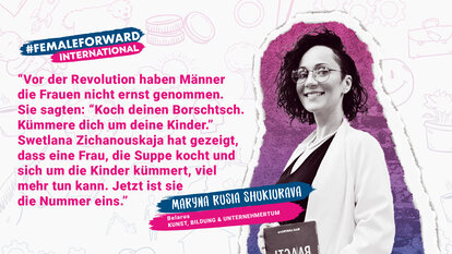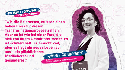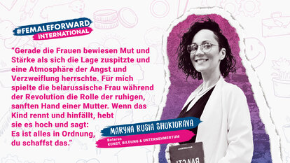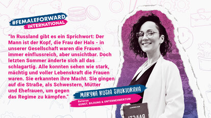 “In Russland gibt es ein Sprichwort: Der Mann ist der Kopf, die Frau der Hals - in unserer Gesellschaft waren die Frauen immer einflussreich, aber unsichtbar. Doch letzten Sommer änderte sich all das schlagartig. Alle konnten sehen wie stark, mächtig und voller Lebenskraft die Frauen waren. Sie erkannten ihre Macht. Sie gingen auf die Straße, als Schwestern, Mütter und Ehefrauen, um gegen das Regime zu kämpfen“, erinnert sich Shukiurava.