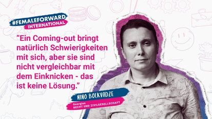 „Endlich habe ich die Bedeutung der Regenbogenfahne verstanden. Wenn Ihr Leben blüht und neue Farben annimmt, werden Ihre Emotionen heller und kräftiger, das Leben ist voller Freude. Das Coming-out bringt natürlich Probleme mit sich, aber diese sind kein Vergleich dazu, wie wenn man im Verborgenen bleibt. Das ist keine Lösung“, sagte Nino Bolkvadze.