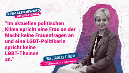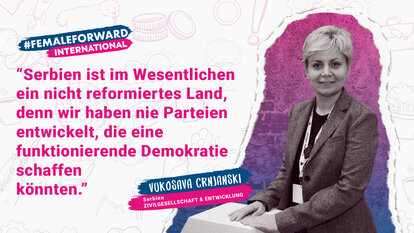 Als eine Frau in Serbien, die sich gegen die regressive Rhetorik der Politiker wehrt, sieht Vukosava eher ein strukturelles Problem. „Im aktuellen politischen Klima spricht eine Frau an der Macht keine Frauenfragen an und eine LGBT-Politikerin spricht keine LGBT-Themen an“, sagt sie mit Verweis auf die offen homosexuelle, aber zwiespältig angenommene Premierministerin Ana Brnabić, die Teil des politischen Status quo ist. „Es gibt bei all dem willkommene Schritte, aber von außen betrachtet ist alles in Ordnung, während es von innen betrachtet nur Augenwischerei ist. Letzten Endes ist es ein System, von dem die Männer profitieren.“
