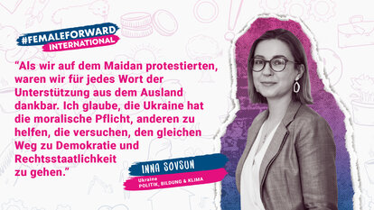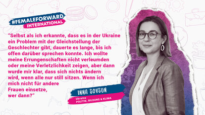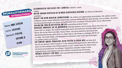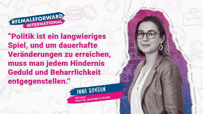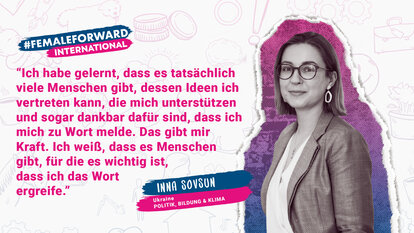 “Lest Bücher. Das ist der Weg, sich selbst zu ermächtigen. Man sollte Bücher über Feminismus lesen. Auch wenn euch das Thema im Moment nicht so sehr beschäftigt, es wird euch helfen die innere Stärke zu entwickeln”, lautet Innas Botschaft an junge Frauen. Sie betont, wie wichtig es sei, andere Frauen bei der Verwirklichung ihrer Ziele zu unterstützen, auch wenn in manchen Fragen die Meinungen auseinandergehen.