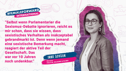 Aber obwohl diese Diskrepanz noch besteht, ändert sich die Kultur, denn die Gesellschaft lernt, die Norm der sexistischen Politik in der Ukraine in Frage zu stellen und auf die ungerechte Behandlung von Frauen zu reagieren. Einer der Gründe dafür ist laut Sovsun das wachsende Bewusstsein der Frauen, dass sie in die Politik einsteigen können.
