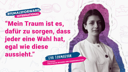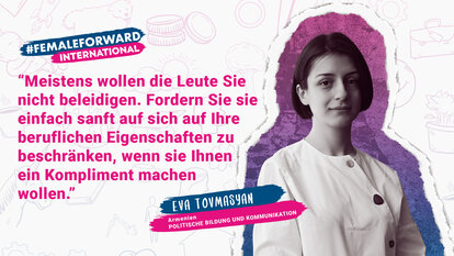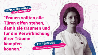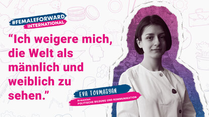 “In den Buchhandlungen in Armenien gibt es blaue und rosafarbene Bücher mit Berufen für Jungen und für Mädchen. Sie sind der pure Alptraum. Frauen sollen Friseurinnen, Krankenschwestern und Lehrerinnen werden. Ich finde es genauso inakzeptabel, Jungen bestimmte Berufe zuzuweisen”, erzählt Eva. Sie ist der Meinung, dass wir diese Haltungen täglich hinterfragen und versuchen müssen, uns gegenseitig dazu zu bringen, diese Stereotypen zu überwinden.