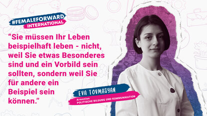 In der armenischen Gesellschaft gibt es bereits ein gewisses Verständnis für diese Themen. Doch die Veränderungen sind sowohl positiv als auch negativ. Aufgrund der Entwicklung der sozialen Medien und der Auslandsreisen sind immer mehr junge Frauen in Führungspositionen zu sehen. Aber nicht jede Frau sollte eine Führungsposition innehaben, sagt Eva. “Jede Frau muss entscheiden, was das Beste für sie ist und welche Möglichkeiten sie hat. Vielleicht möchte eine Frau Hausfrau und Mutter werden, und das sollte ihr freistehen. Es ist keine Schande Hausfrau und Mutter werden zu wollen. Aber es ist auch keine Schande, wenn eine Frau in ihren Dreißigern glücklich ist, ohne davon zu träumen, einen Mann zu finden oder Kinder zu kriegen. Mein Traum ist es, dafür zu sorgen, dass jeder die Wahl hat, wie auch immer diese Wahl aussehen mag. Frauen sollten über alle Mittel und Möglichkeiten verfügen, um träumen zu können und für die Verwirklichung dieser Träume zu kämpfen.”