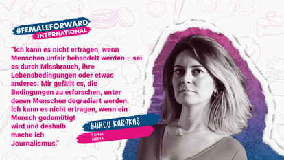 “Ich kann es nicht aushalten, wenn ein menschliches Wesen gedemütigt wird. Das ist der Grund warum ich Journalismus betreibe - um Menschen an ihre Rechte zu erinnern. Das kann ein missbrauchtes Kind sein, ein gefolterter Migrant oder eine Frau, der Gewalt widerfährt von ihrem Partner.” So beschreibt Burcu Karakaş, eine Türkische Journalisten bei der Deutschen Welle, ihre Motivation, bei den Medien zu arbeiten. Schon seit über zehn Jahren behandelt sie eine Reihe von Themen, u.a. Frauen- und Minderheitenrechte, Migration und Redefreiheit.