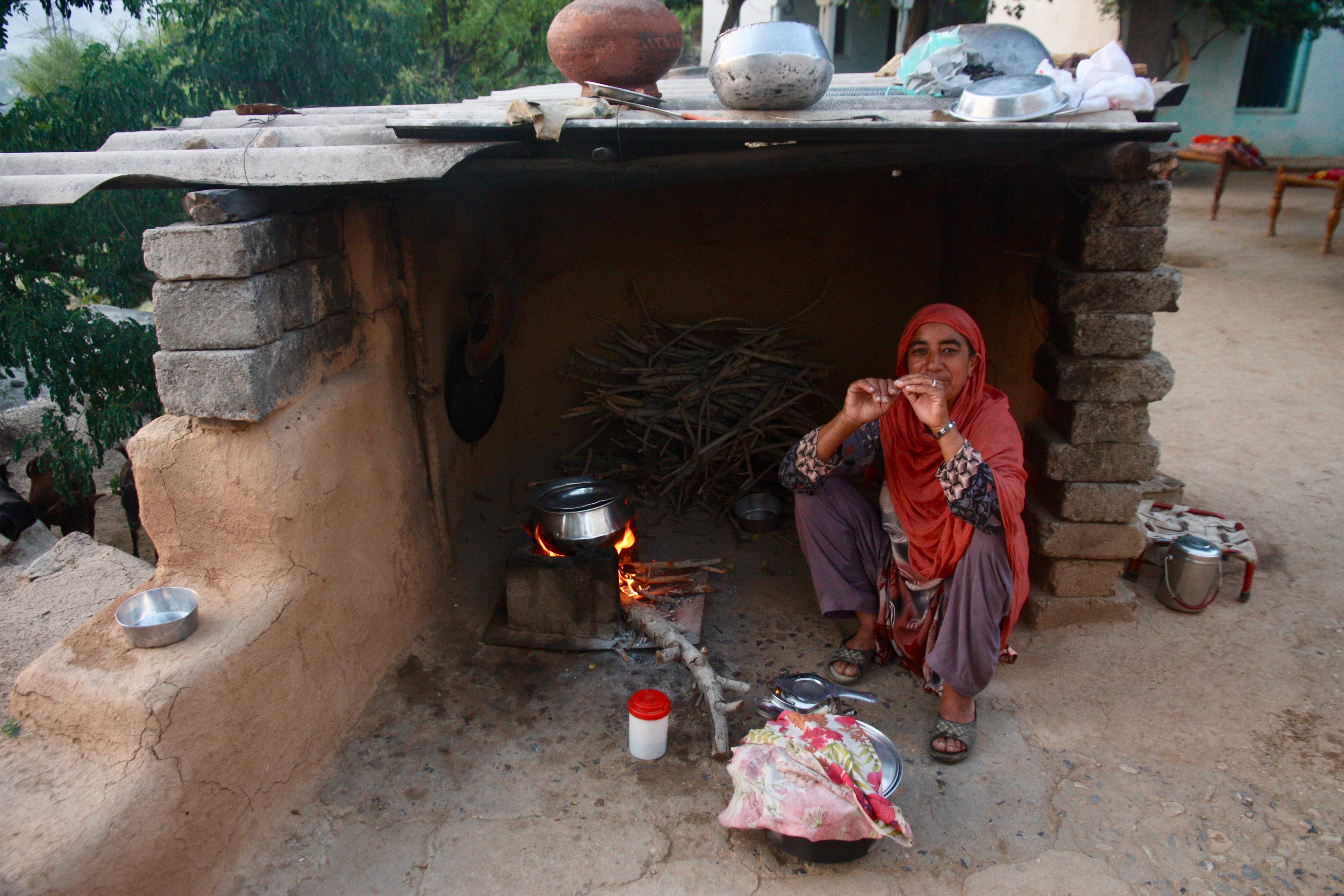 Ghazi- Dorffrau bei der traditionellen Teezubereitung, July 2020