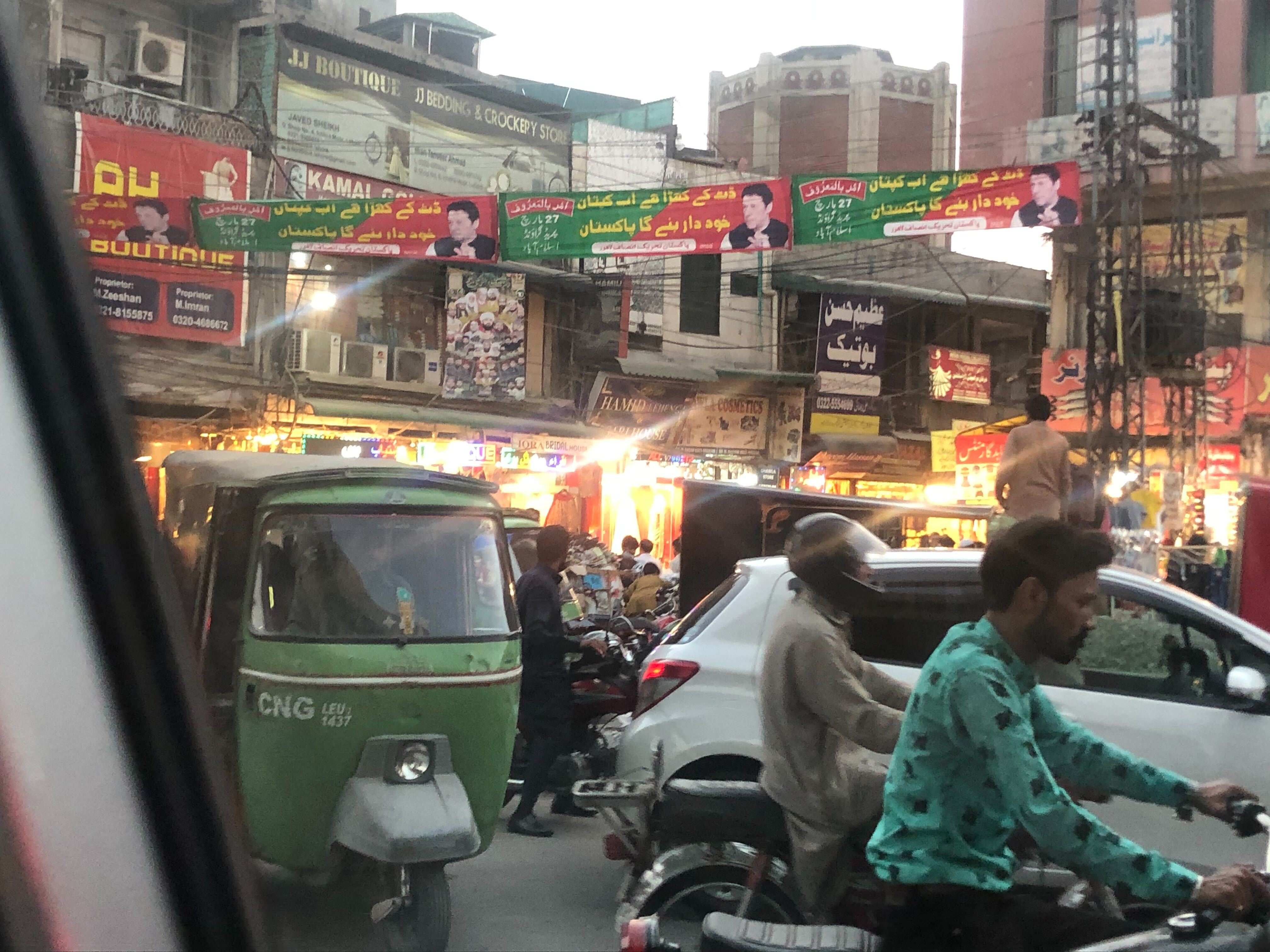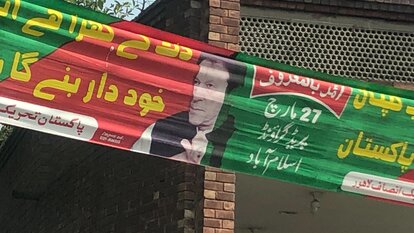 PTI Kampagnenposter im Stadzentrum von Lahore.