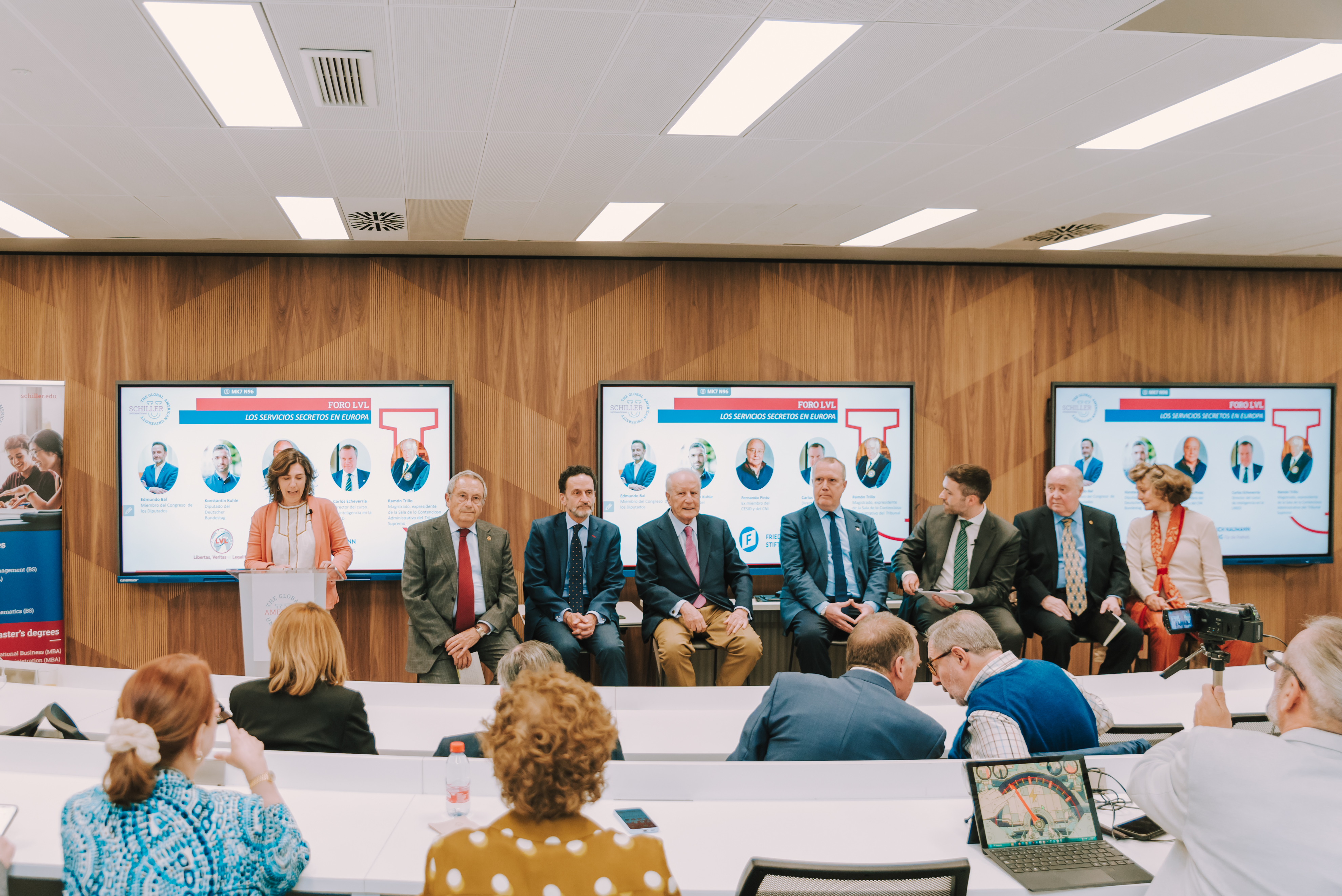 (From left to right) Victoria Bamond, Dean Schiller University; Diego Camacho: Moderator; Edmundo Bal: Member of the Congress of Deputies; Ramón Trillo Magistrate, former President of the Administrative Chamber of the Supreme Court; Carlos Echevarría: Director of the intelligence course at UNED; Konstantin Kuhle: Member of the German Parliament; Fernando Pinto: Former member of CESID and CNI.